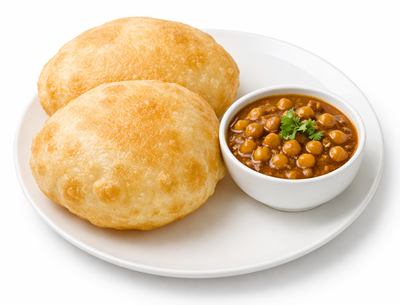 Fluffy deep fried bhature served with spicy tangy chole, a classic North Indian comfort dish.