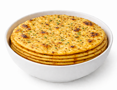 Nutritious roti made with gram flour, spices, and herbs, slightly thick and flavorful.