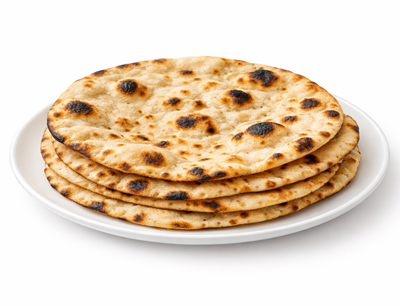 Traditional clay oven baked roti with smoky flavor and slightly crisp texture.